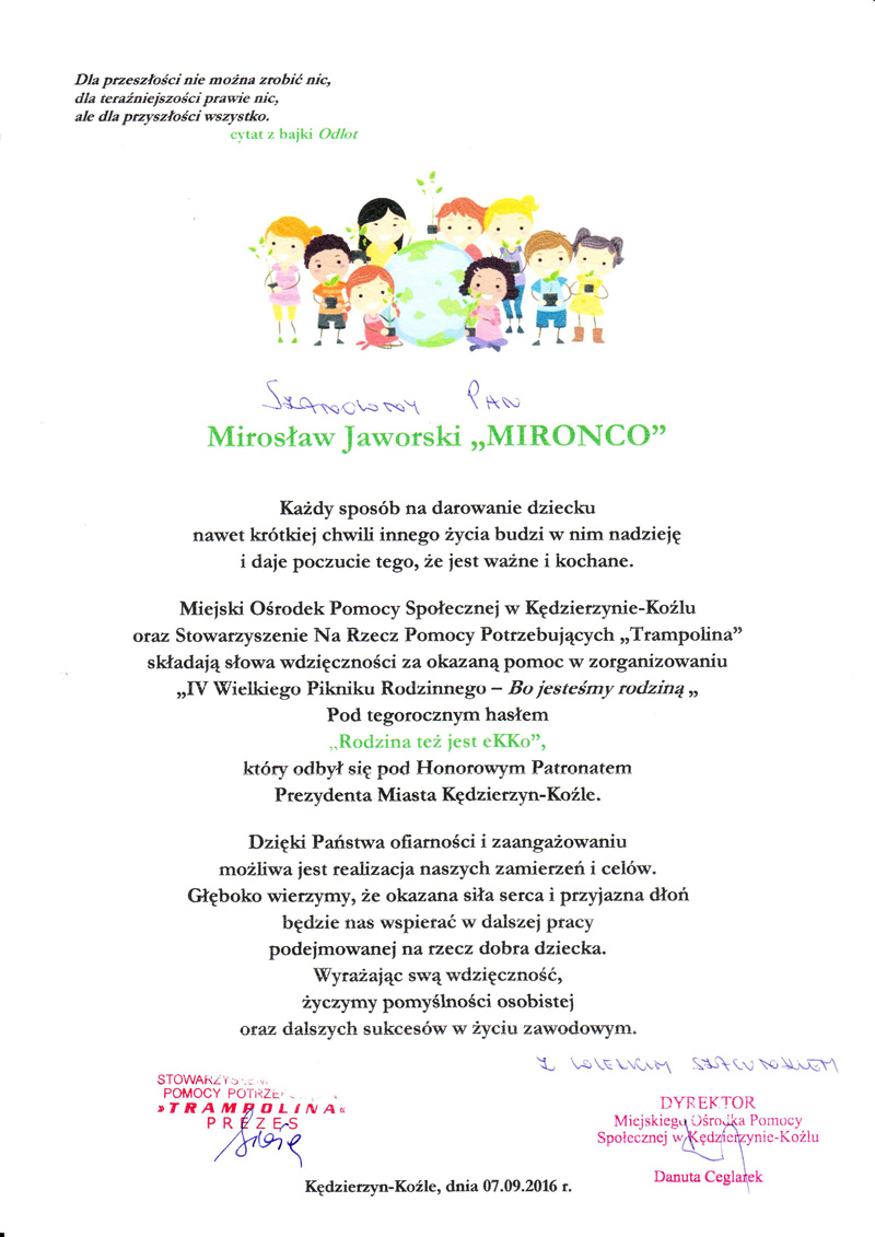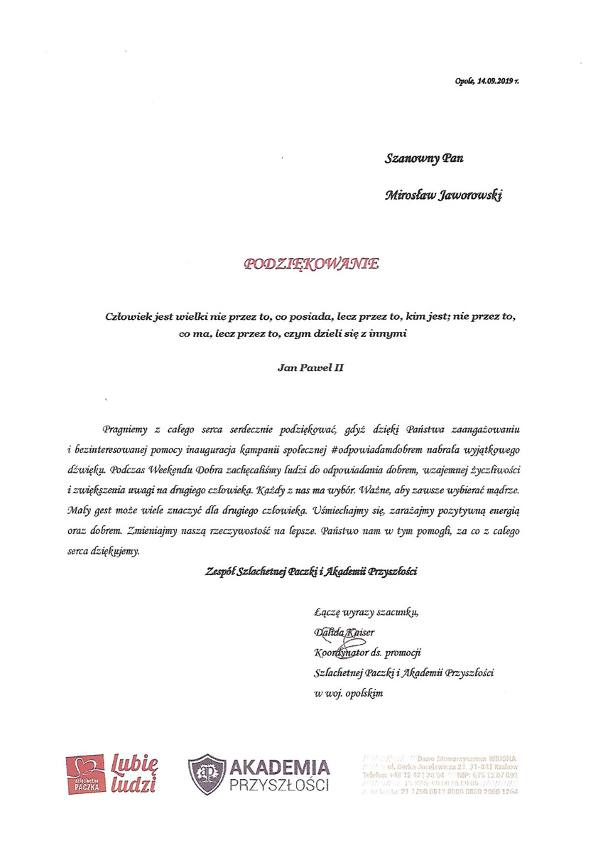 Panie Mironie, serdecznie dziękujemy za kolejne uświetnienie marszu Szlachetnej Paczki i Akademii Przyszłości. Cieszymy się, że zawsze możemy na Pana liczyć, a wszystkie eventy z panem są po prostu świetne!